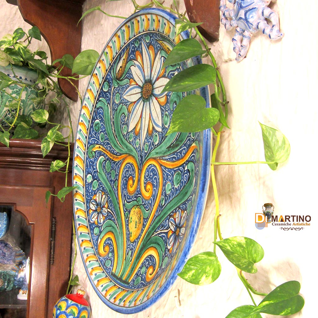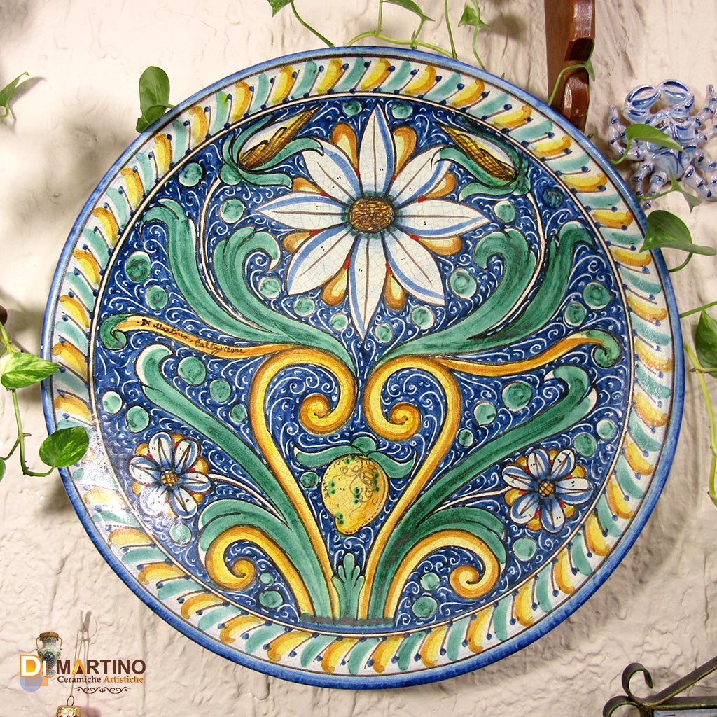 Il decoro in particolare è un Margheritone dell'800, con fondo blu antico e grafiti. Smalto iridescente effetto oro ed antichizzato.