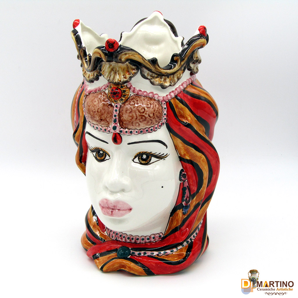Splendida coppia di teste moderne, colori vividi e brillanti. Smalto effetto vetro. Curate in ogni minimo dettaglio e con i colori tipici siciliani : giallo ocra, rosso, arancio e manganese. Stanno benissimo sia in ambienti classici che moderni. Edizione limitata. Dimensioni: altezza 30cm larghezza 21cm.