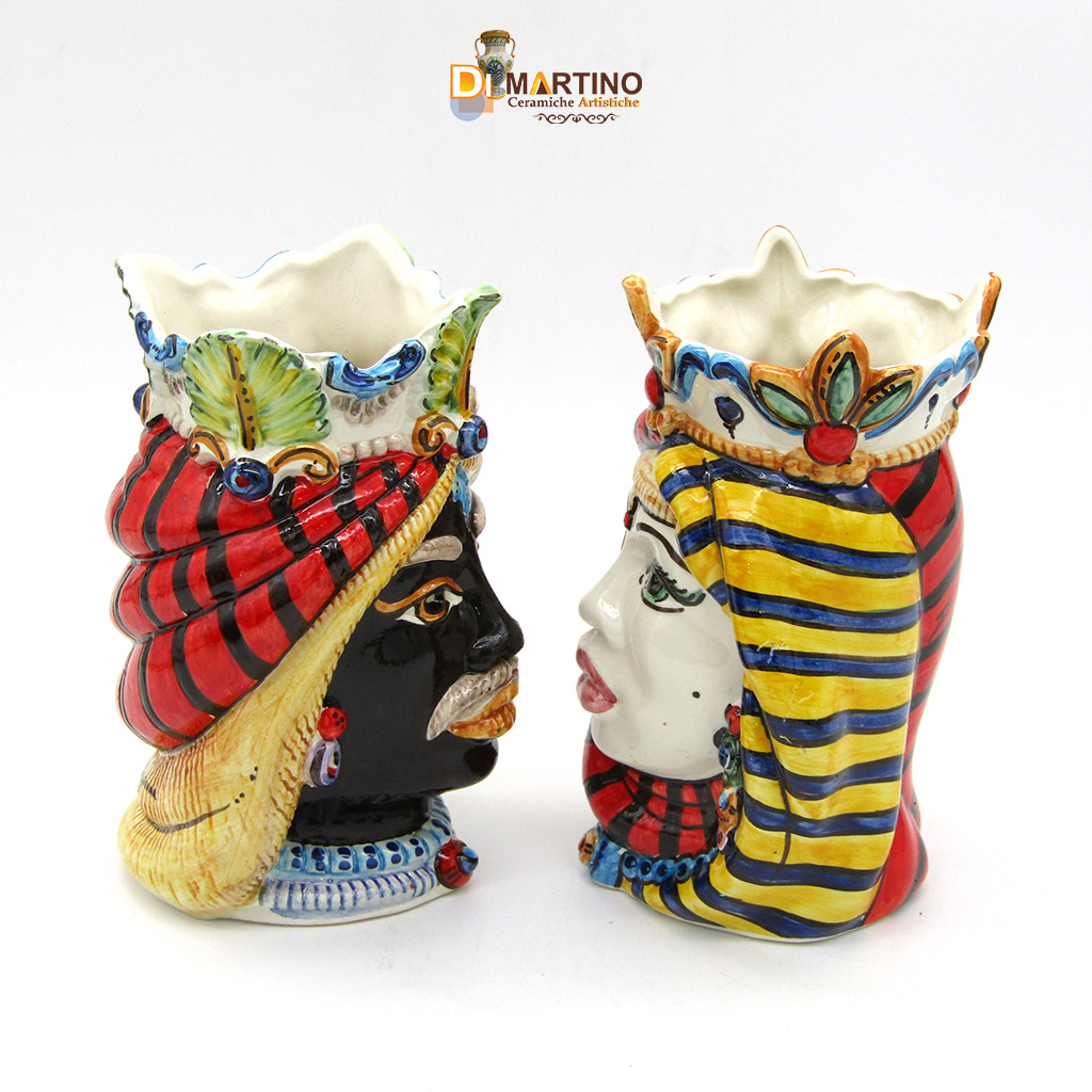 Coppia di teste di moro, serie normanni, colori vivaci e brillanti su smalto lucido effetto vetro.